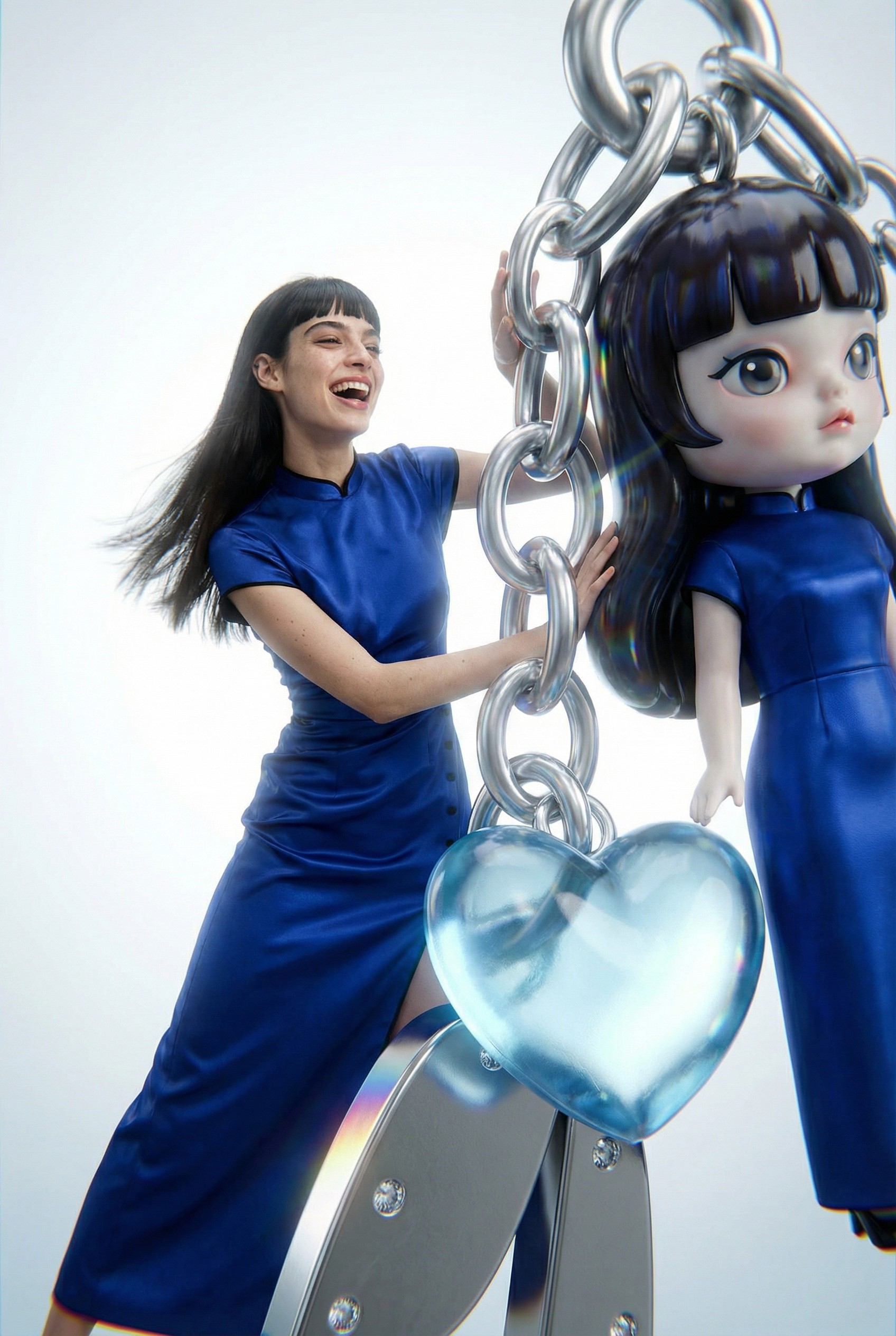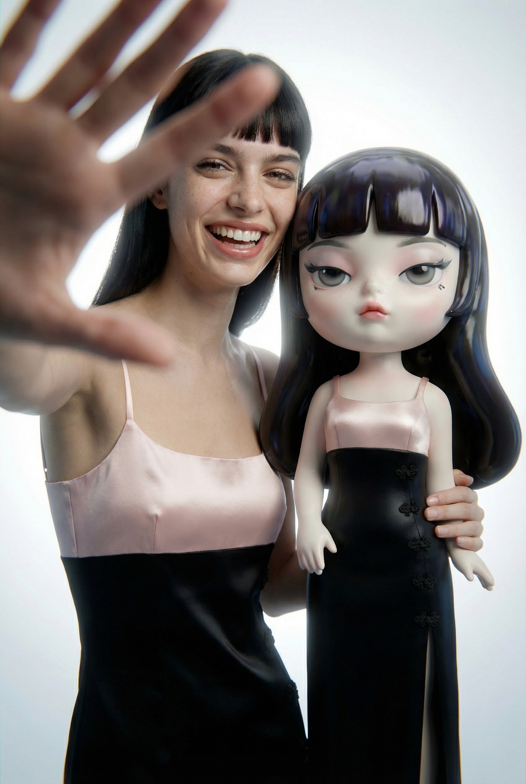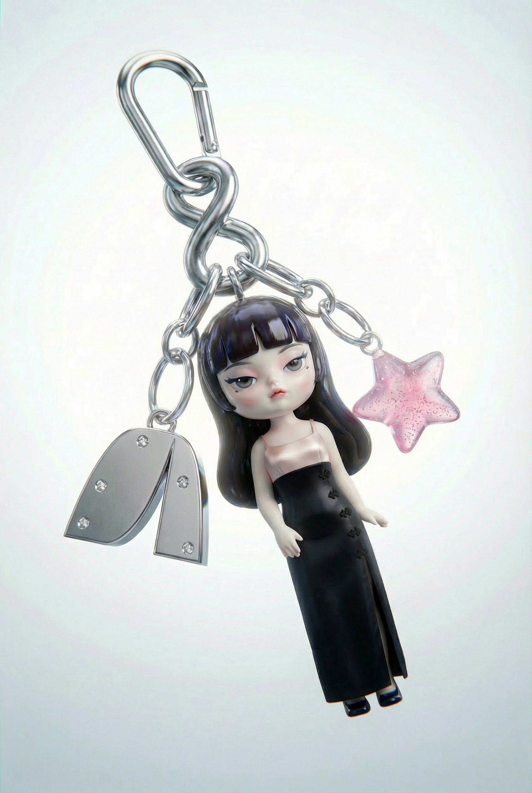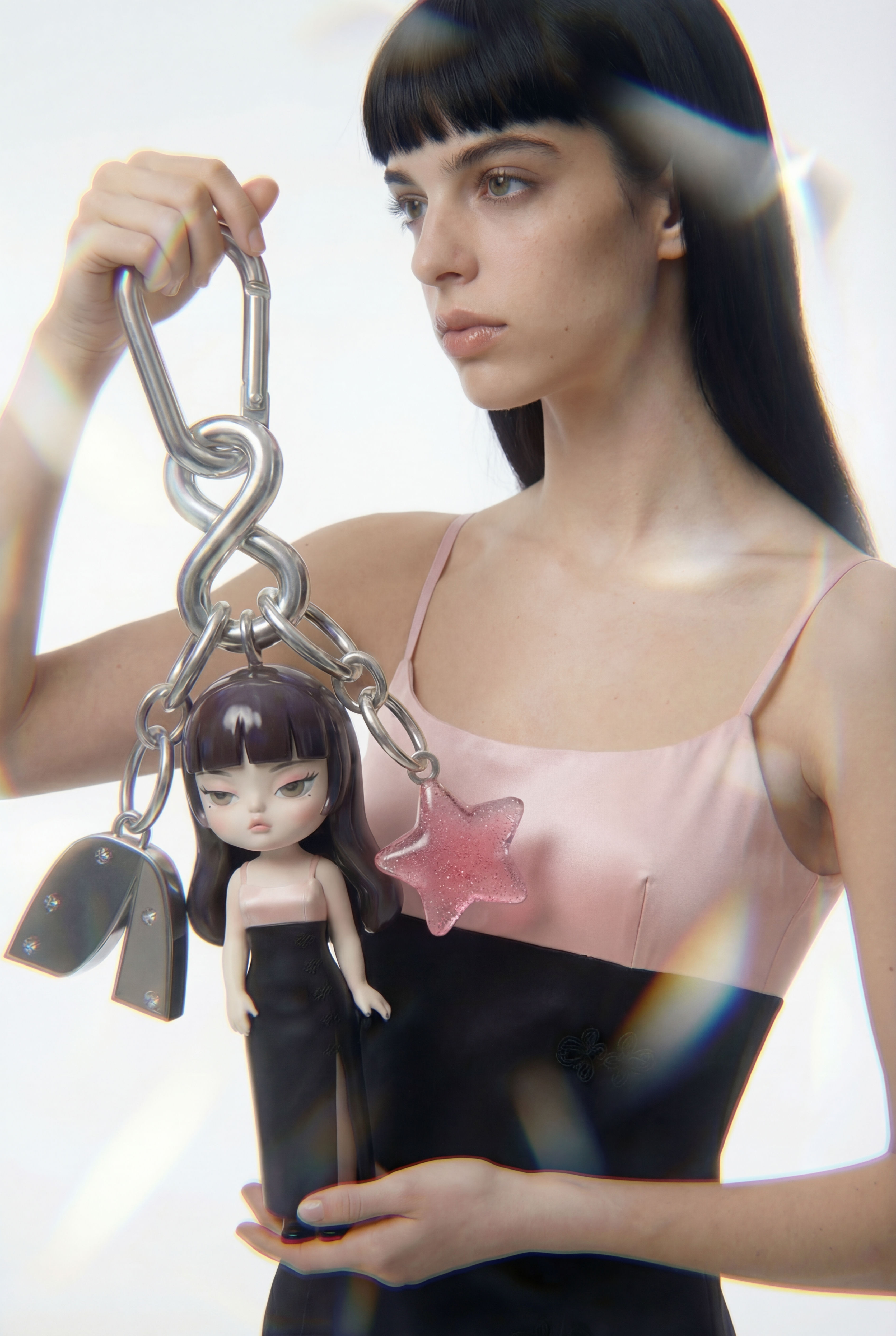 A playful editorial built around custom-made charms featuring miniature figures dressed in real AMLUL garments. Disclaimer: Not affiliated with the brand..